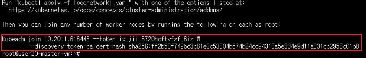sudo kubeadm join 10.20.1.6:6443 --token ixujii.6720hcftvfzfu6iz --discovery-token-ca-cert-hash sha256:e3b0c44298fc1c149afbf4c8996fb92427ae41e4649b934ca495991b7852b855